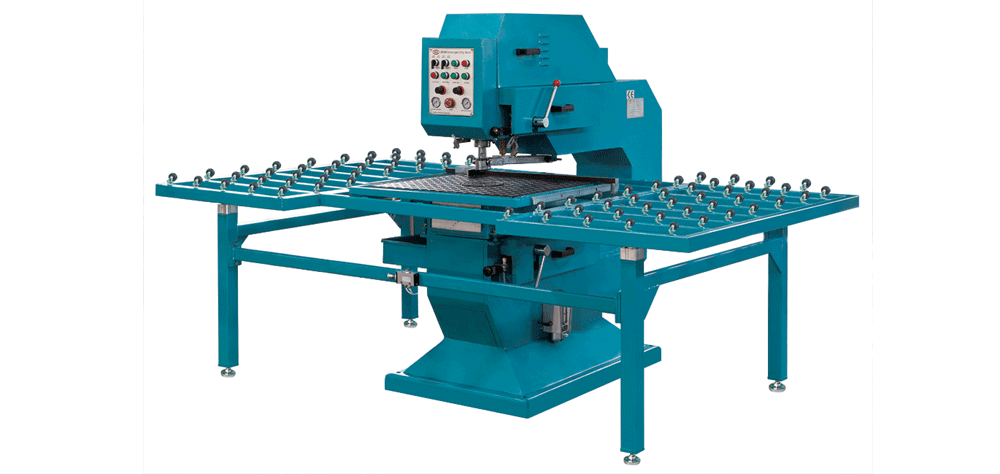 - a) Mašina ima 2 radna vretena, koja prave rupe u staklu s gornje i donje strane.